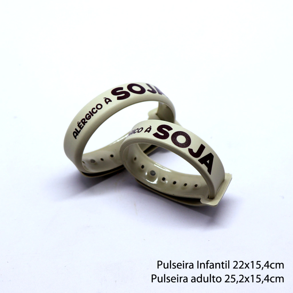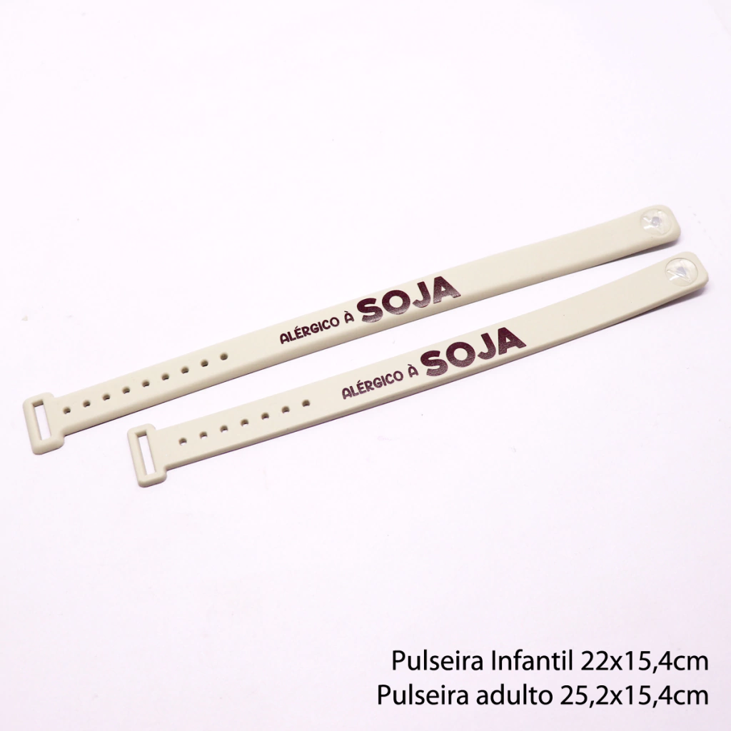 Procurando uma forma segura e discreta de alertar sobre alergia à soja? Apresentamos nossa Pulseira de Identificação para Alérgicos a Soja, feita com material emborrachado de alta qualidade e com sistema de regulagem para garantir o ajuste perfeito ao seu pulso. Esta pulseira é à prova d'água, resistente e durável, oferecendo tranquilidade e segurança aos usuários alérgicos.